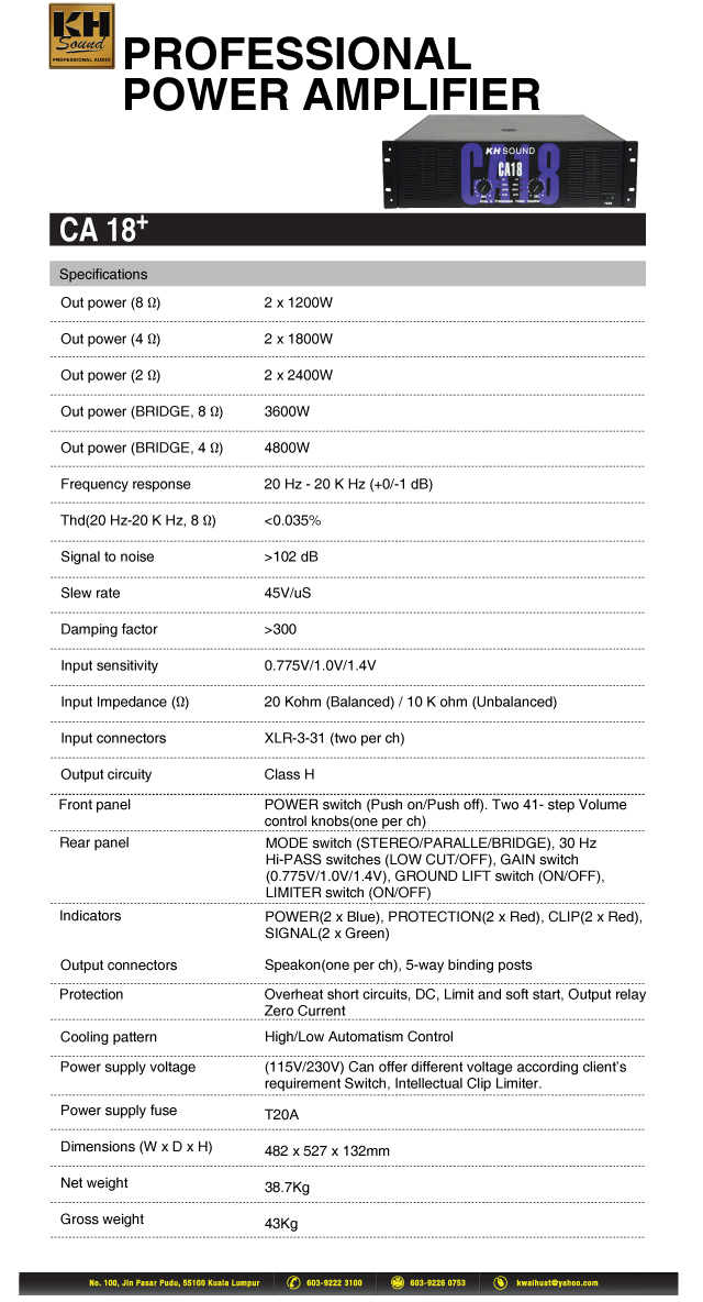 Out power (BRIDGE, 4 Ω) | 4800W |
